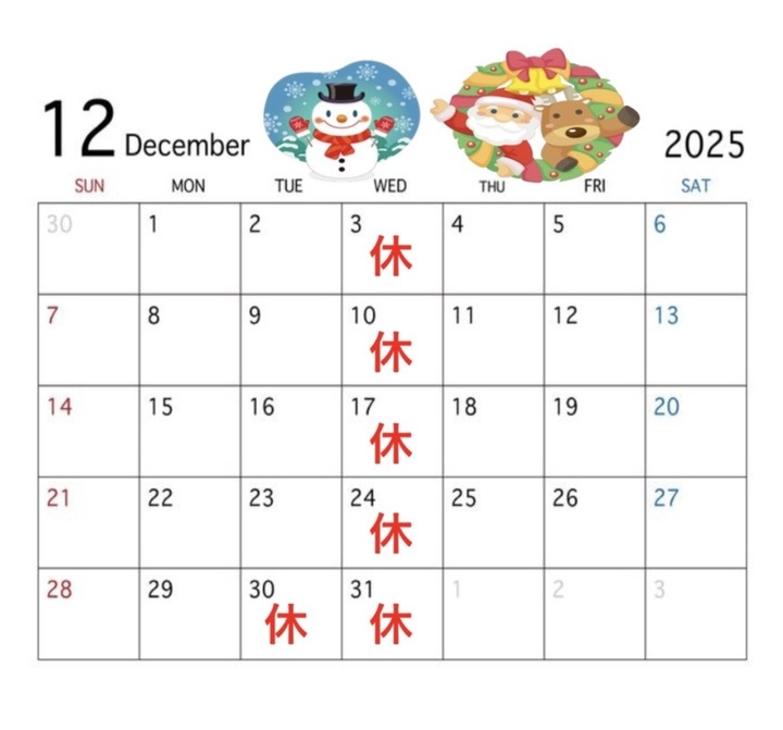 年末年始 【12/31・1/1・1/2・1/3】お休みとなります。 |